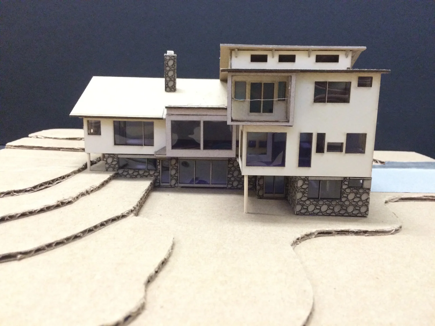 Originally built in 1955, this modern box has hardly been touched since. The 28’ x 56’ two story structure was built into a hill with a short end facing the street. The long north face has most of its lower half the hill with the main entry on that side at the upper (first floor) level. The long south wall is a “walk-out” elevation opening out on to a lovely garden with access at the lower (Terrace ) level. The street facade is a single-car garage door and little else. The front door is accessed by a stepped path leading from the driveway to a landing about 20’ along the north side. Curb appeal was not paramount to whoever built this home. Now owned by a young family, they charged Incite with adding additional space; better flow and providing a visitor friendly entry while maintaining the modern aesthetic. Our addition, placed off the south east corner of the home, creates a new entry with foyer at the street/terrace level. The addition also contains a guest room, and a mudroom was created in the old utility space. A new stair links the foyer to the first floor and an all new 2nd floor. The addition at the first floor contains the new kitchen and breakfast area oriented to the garden. The old kitchen space is to be converted to the dining room. Other changes can be seen in the “before” and “after” floor plans. The all new 2nd floor provides bedrooms for the 2 kids and an office for the parents.